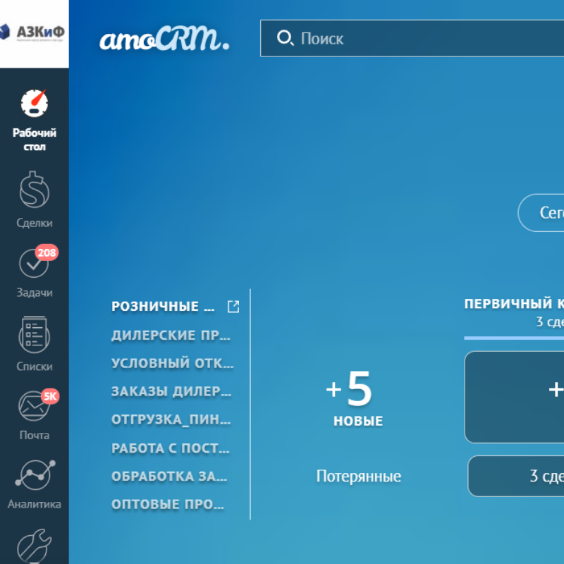 Процессы работы с новыми, повторными и клиентами-дилерами разведены на разные воронки. Потенциал продаж визуализирован